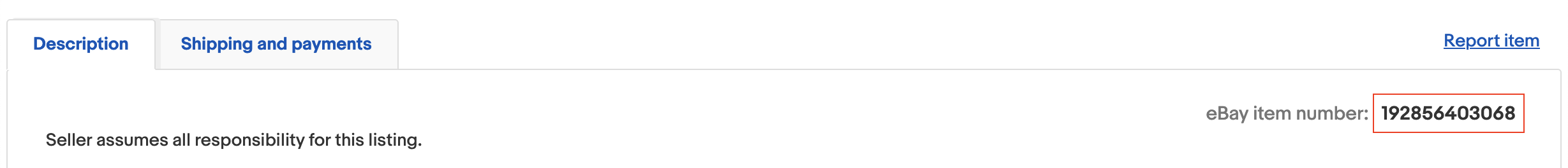 | Entering manually | Slow | Fetch the item number by double-clicking the 12-digit item number in the eBay URL or from the bottom-right-hand corner of the eBay page. ![]() |